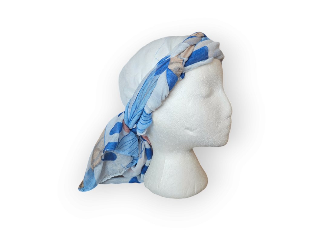 Šátek je v těchto chvílích jemným, ale silným společníkem – chrání citlivou pokožku hlavy, zahřívá a zároveň pomáhá znovu nalézt pocit ženskosti a klidu.