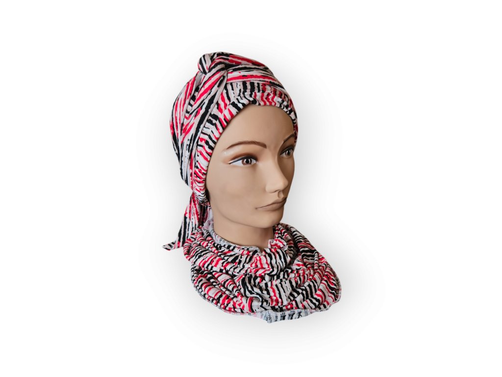 Šátek je v těchto chvílích jemným, ale silným společníkem – chrání citlivou pokožku hlavy, zahřívá a zároveň pomáhá znovu nalézt pocit ženskosti a klidu.